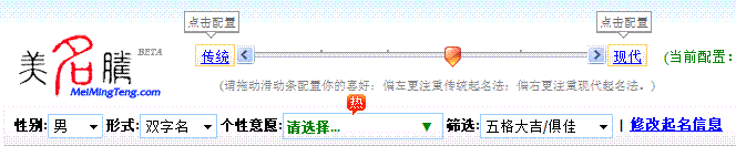 網(wǎng)上流傳的許多寶寶起名大全,大多是一些看上去很美的名字羅列,根本沒有針對寶寶的先天,后天等極為個性信息的考慮,由此也造成了現(xiàn)代俗名的流行。美名騰為用戶定制起名的個性信息,篩選候選名字等提供了諸多方便,如下圖所示: