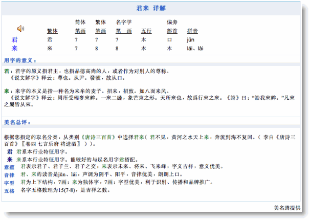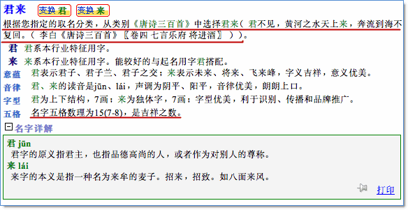3、綜合分析輸入的起名信息,起出滿足條件的名字,如下是其中的一個候選名字