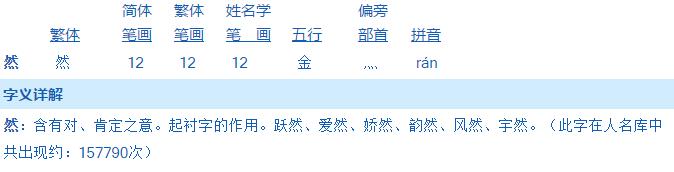 2、“然”字的姓名學(xué)解釋: