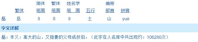四、帶“岳”字的寶寶名字大全
